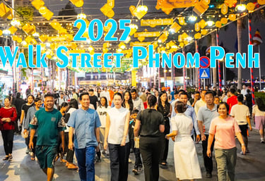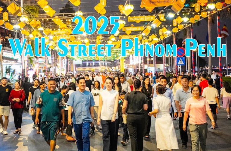 Disfruta de un recorrido a pie por la Walk Street mientras pruebas la comida callejera local, y recorre el Sisowath Quay, ideal para paseos escénicos, atardeceres y la vida local.
