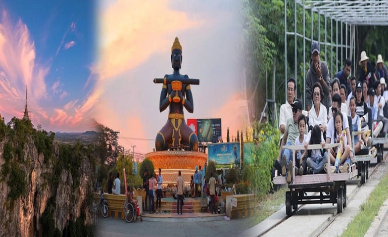 Descubre lo mejor de Battambang en un día con tren de bambú, centro colonial y Wat Banan. Disfruta del atardecer en la montaña de Phnom Sampov con los murciélagos se vuelan saliendo de la cueva.El viaje privado con guía en español, transporte y horarios flexibles.
